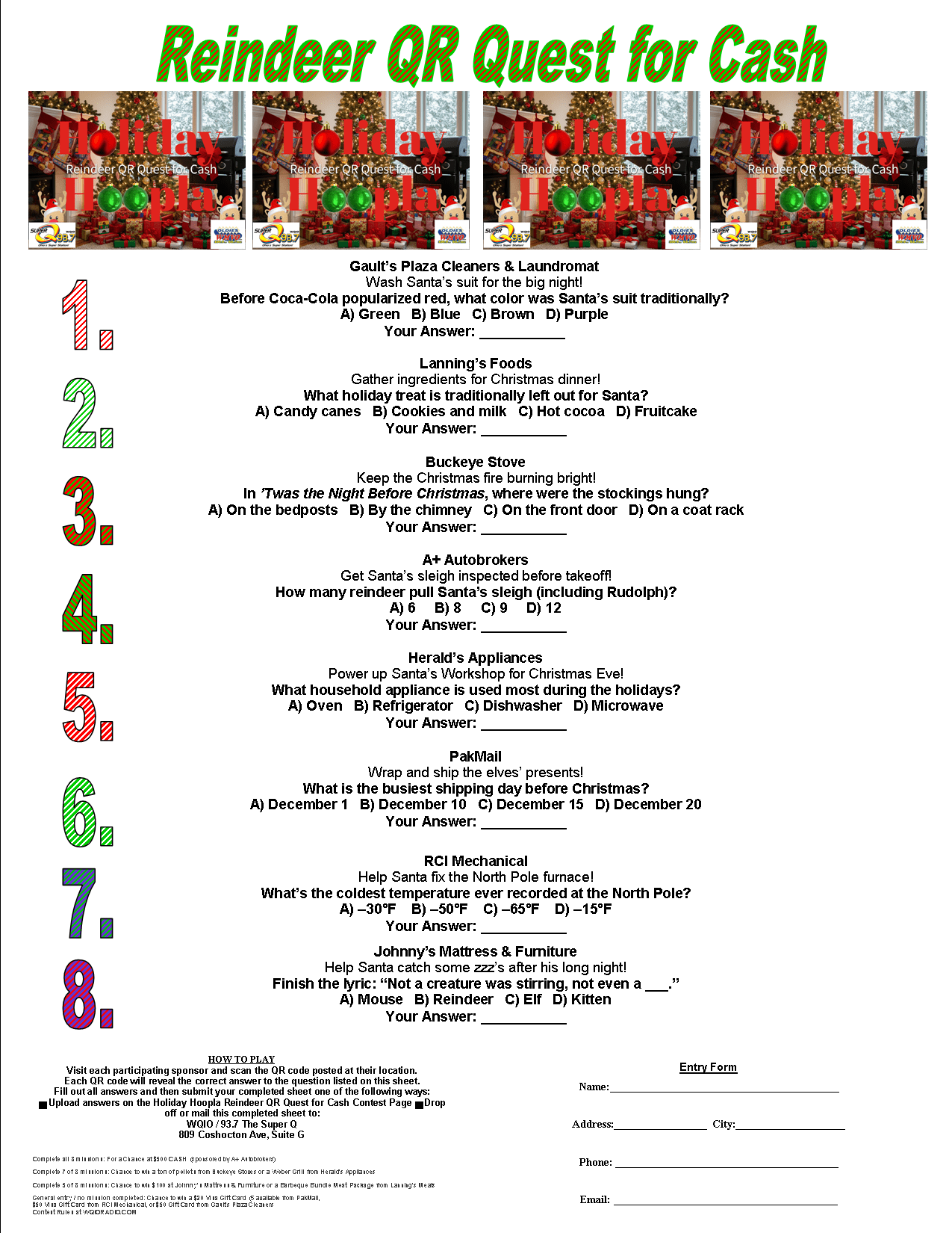 Get ready to join the Holiday Hoopla Reindeer QR Quest for Cash — the ultimate holiday adventure that supports our local businesses! Complete fun, festive reindeer missions at participating sponsor locations for your shot at incredible prizes.✨ The more missions you complete, the bigger your chances to win!