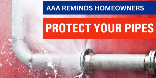 “This week’s severe winter weather can raise havoc not just for roadways, but with homes as well,” said Dan Scroggins. vice president, The Agency at AAA. “Knowing how to protect your plumbing, what to do when your pipes burst and how to process your insurance claim are key to weathering the arctic cold’s potential impacts on your home.”