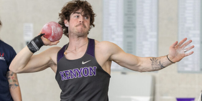 Greville earned the honor with his showing in the North Coast Athletic Conference (NCAC) Championship’s Heptathlon. The seven events played out over two days in Oberlin, Ohio, and Greville piled up 4,460 points. That total gave him a second-place finish and also went in the books as a new Kenyon record.