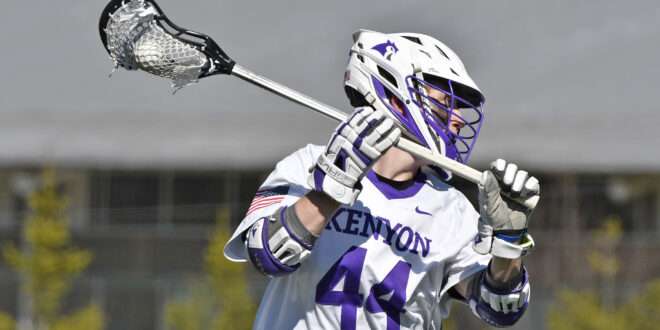 DELAWARE, Ohio — Despite being down by four goals late in Thursday night’s North Coast Athletic Conference (NCAC) Tournament semifinal, the Kenyon College men’s lacrosse team put together an incredible rally that ended with a Rollins Heath goal. That score, which hit twine with just 10 seconds left in the game, gave the Owls a 13-12 victory in a crazy affair at Selby Stadium.